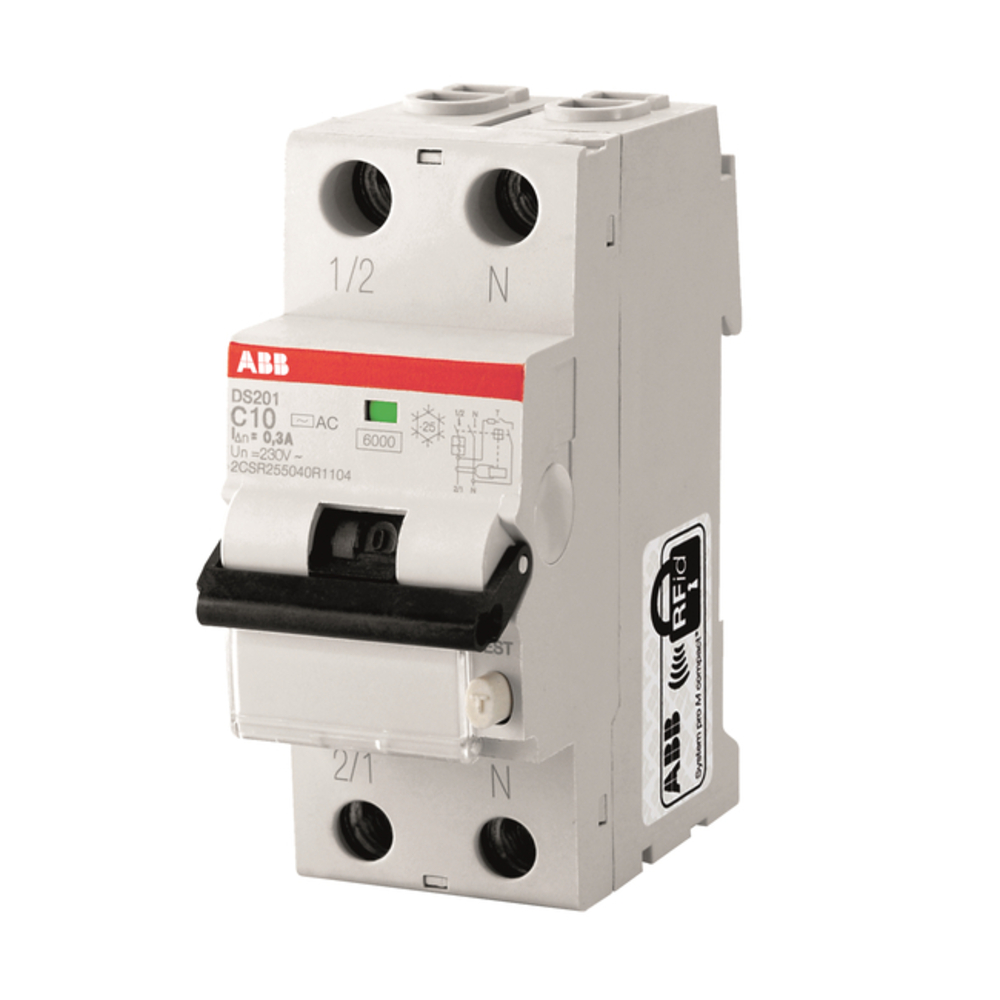 ABB 1P+N B16 30MA A-TYPE RESIDUAL CURRENT CIRCUIT BREAKER WITH OVERCURRENT PROTECTION