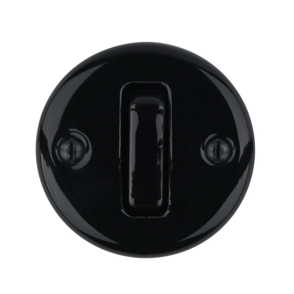 Fnd superficie interruttore deviatore universale, porcellana nera, con terminali a vite, 10A, 250V, IP20.